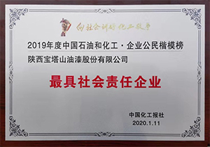 2020年1月11日,寶塔山漆被評為2019年度最具社會(huì)責(zé)任企業(yè)
